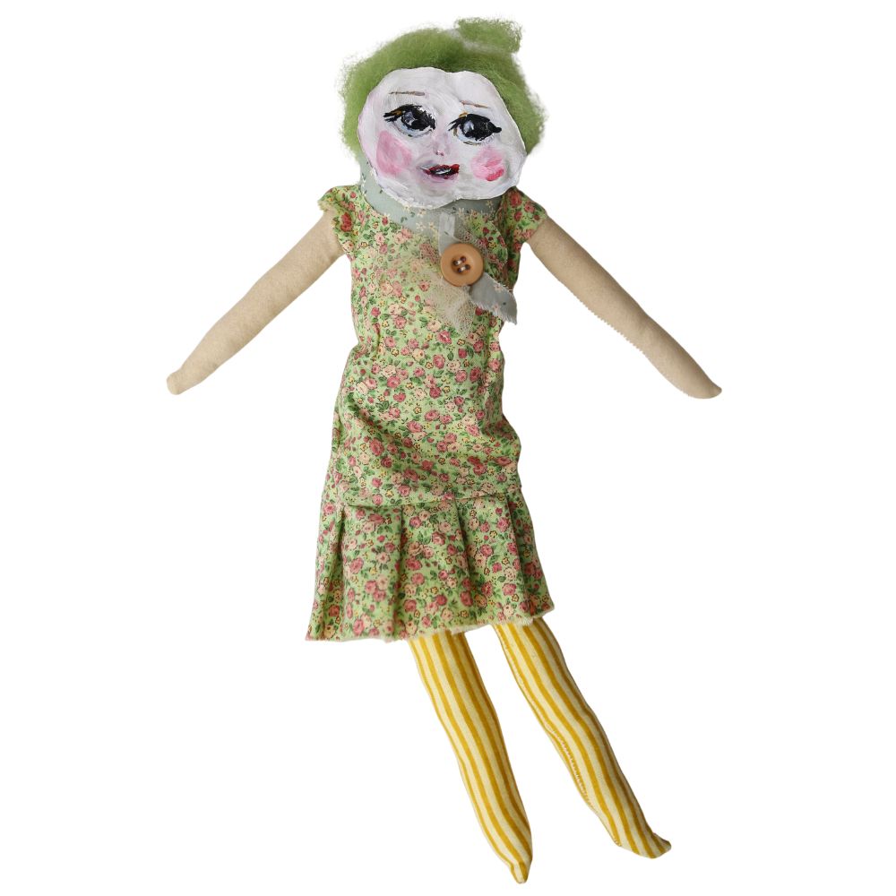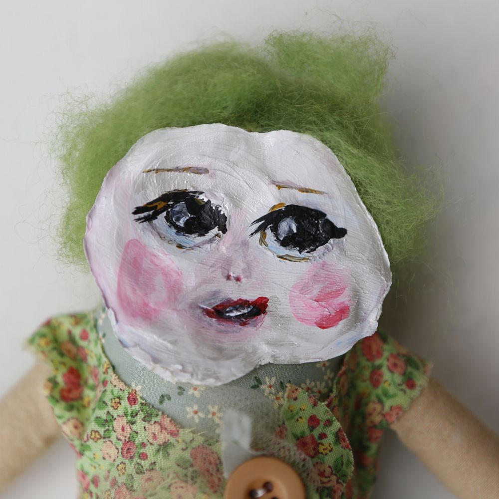 Green Romance looks at the world with wide, trusting eyes. In her hand-dyed floral dress, striped legs, and moss-toned hair, she carries a tender, romantic presence that invites wonder. She reflects the part of you that remains open, sensitive, and ready to see beauty.